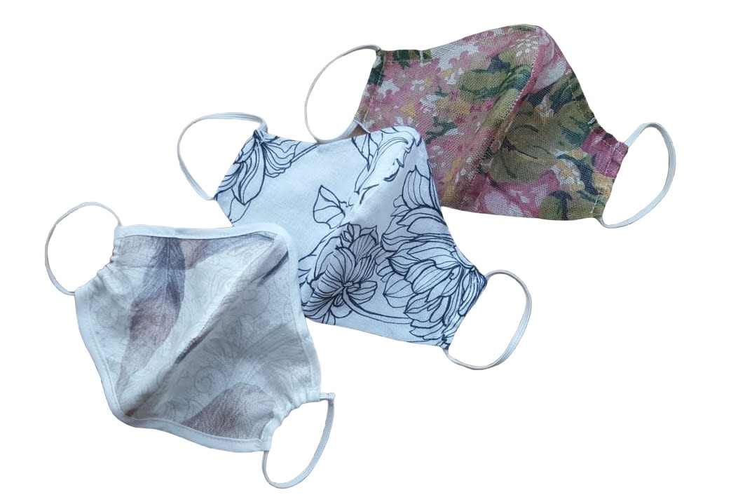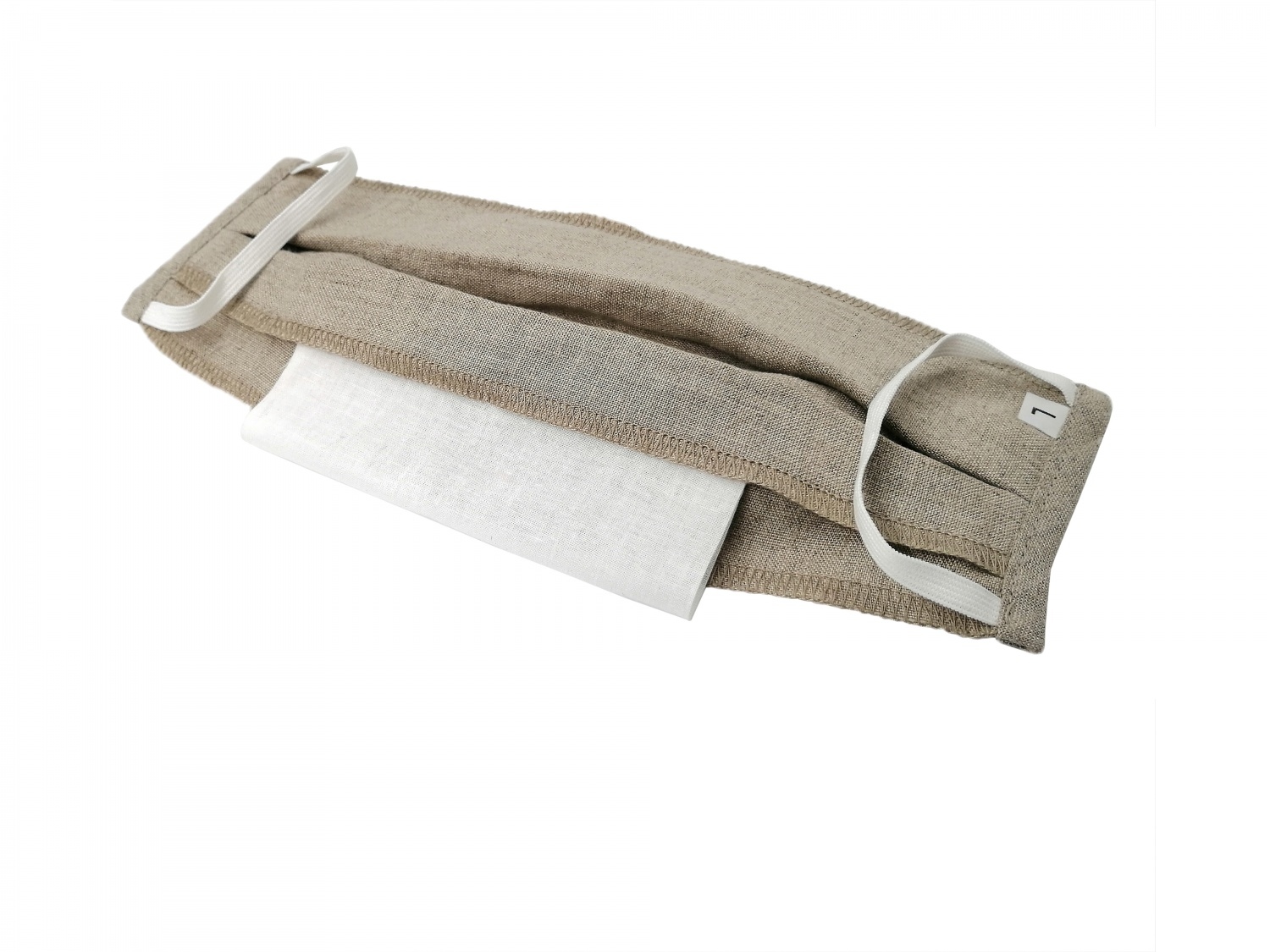 Jedna z wielu wersji masek lnianych jest dwuwarstwowa z tkaniny lnianej + kieszeń na dodatkowy filtr .