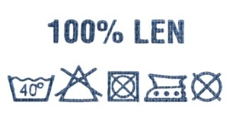 Odzież lniana lub inny wyrób gotowy, uszyty w kombinacji z innymi materiałami, kolorowymi nićmi lub dodatkami nie lnianymi , może mieć wpływ na sposób pielęgnacji. Dlatego ZAWSZE najpierw sprawdź instrukcje prania na etykiecie. Chociaż wszystkie 100% lniane sukienki, tuniki, spodnie i koszule itd. można prać w pralce, inne materiały używane do szycia, wykończenia i wypełnienia mogą wymagać czyszczenia chemicznego. Ignorowanie lub nieznajomości tej instrukcji może zniszczyć produkt.